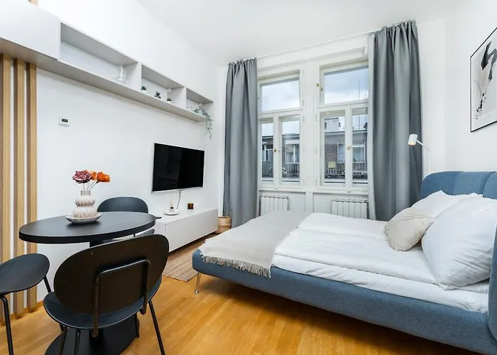 Rentero Charles Square Studio Apartment Parking On Request dispose d'une cuisine équipée équipée d'un four et d'un lave-vaisselle. Ces propriétés Rentero Charles Square Studio Apartment Parking On Request est à 150 mètres de la station de métro Národní třída.